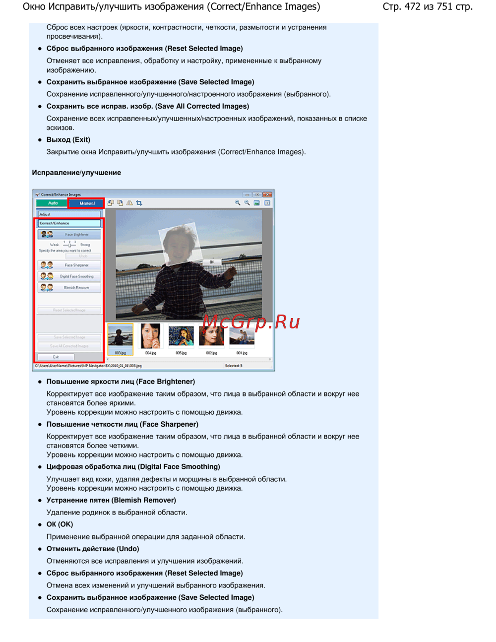 Стр. 472 из 751 стр.Окно Исправить/улучшить изображения (Correct/Enhance Images)