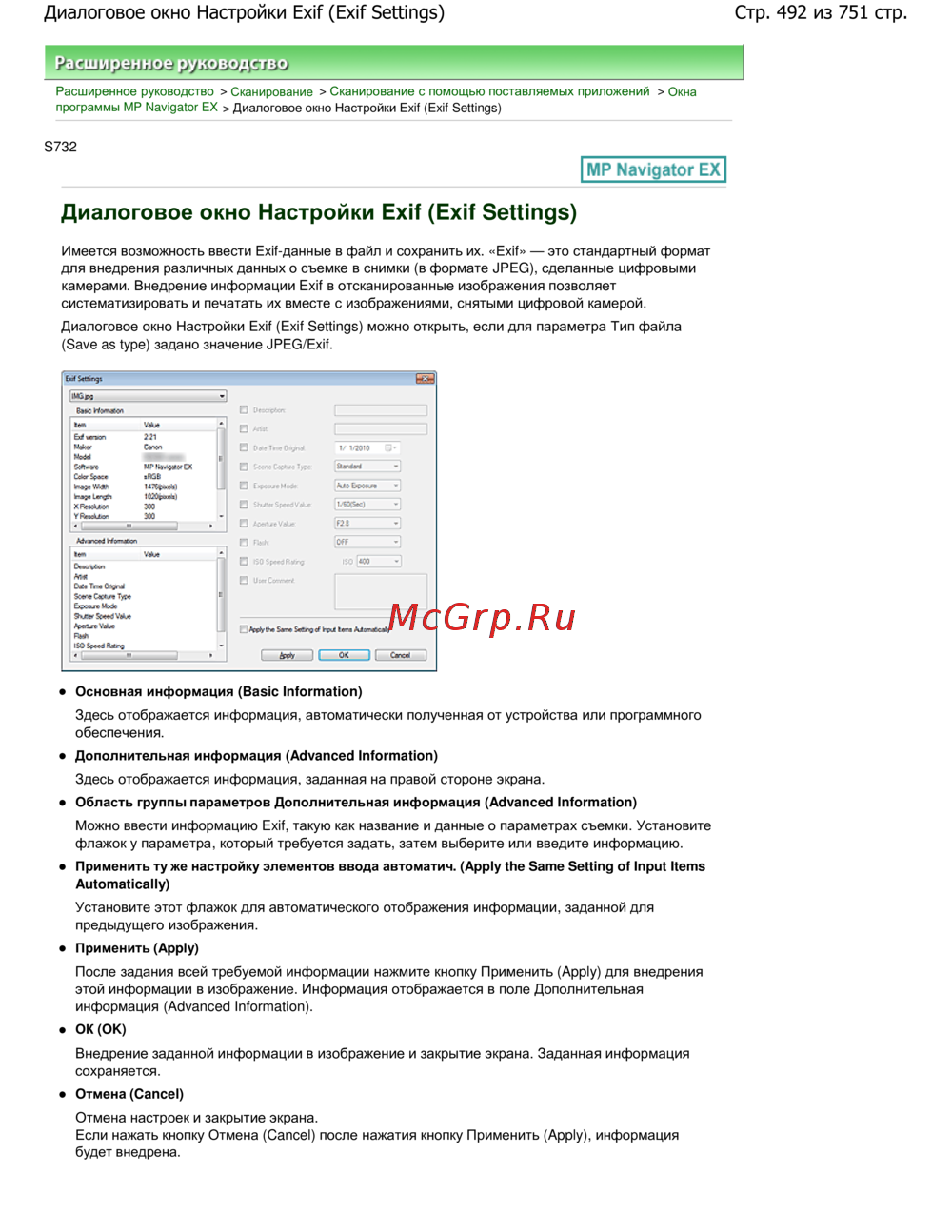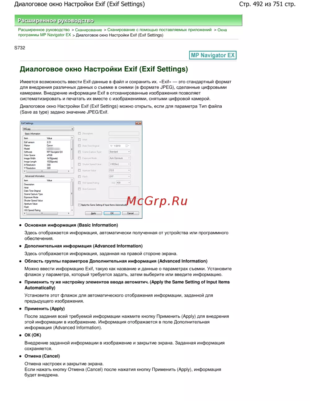 Canon PIXMA MP282 — полное руководство по настройкам Exif для сканированных изображений [492/751]