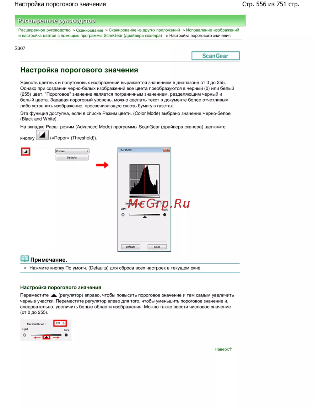 и настройка цветов с помощью программы ScanGear (драйвера сканера) > Настройка порогового значения