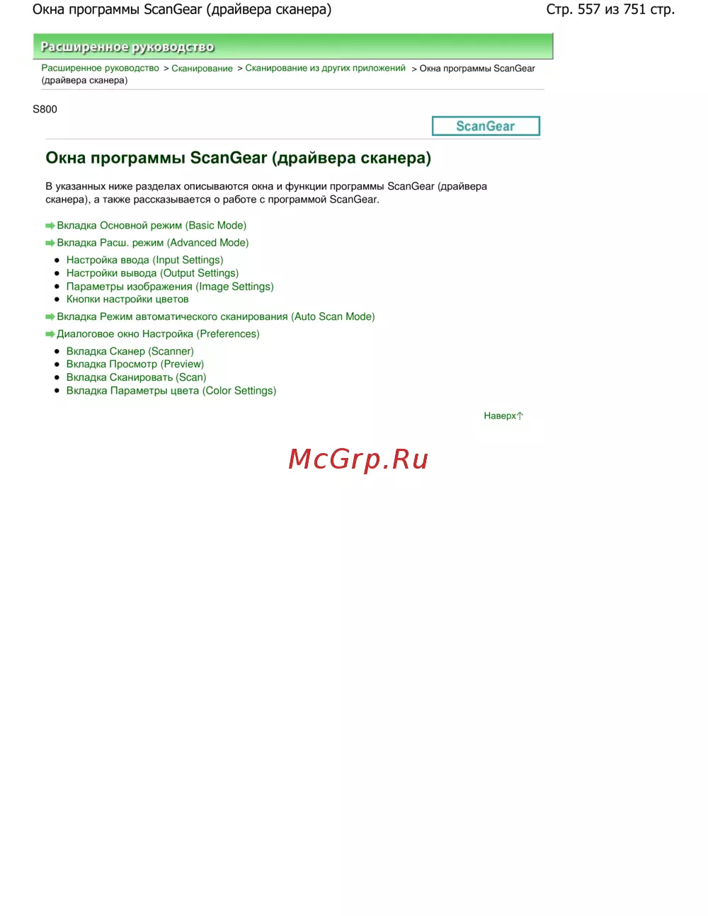 Стр. 557 из 751 стр.Окна программы ScanGear (драйвера сканера)