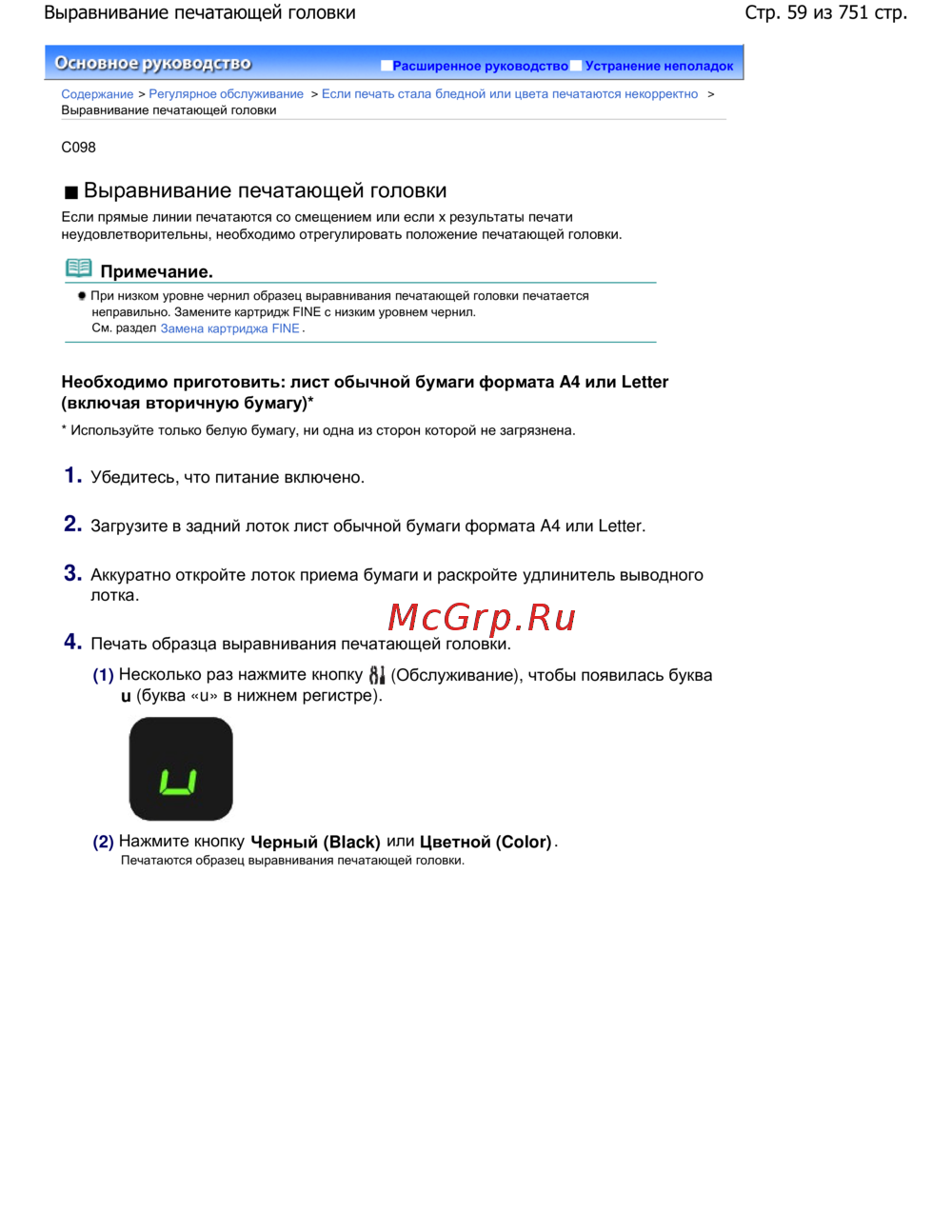 Стр. 59 из 751 стр.Выравнивание печатающей головки