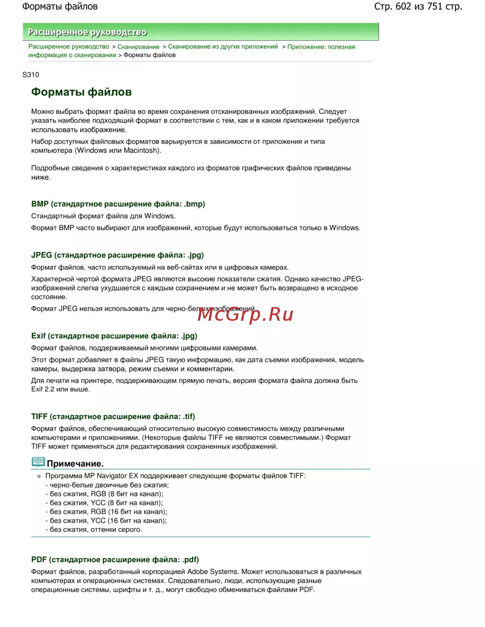 Canon PIXMA MP282 — полезная информация о форматах файлов для сканирования изображений [602/751]