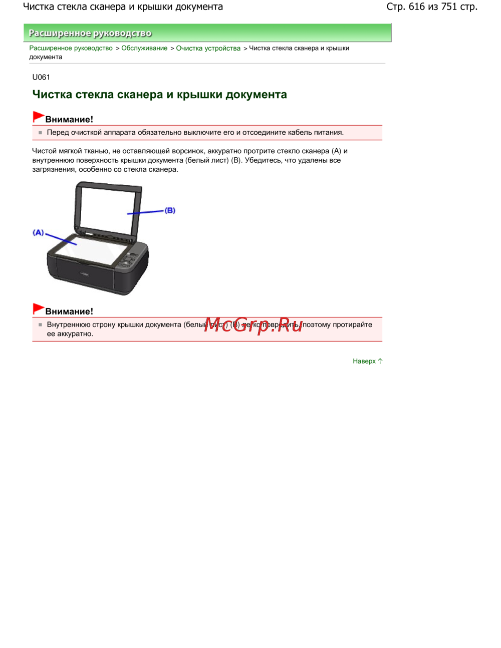 Стр. 616 из 751 стр.Чистка стекла сканера и крышки документа