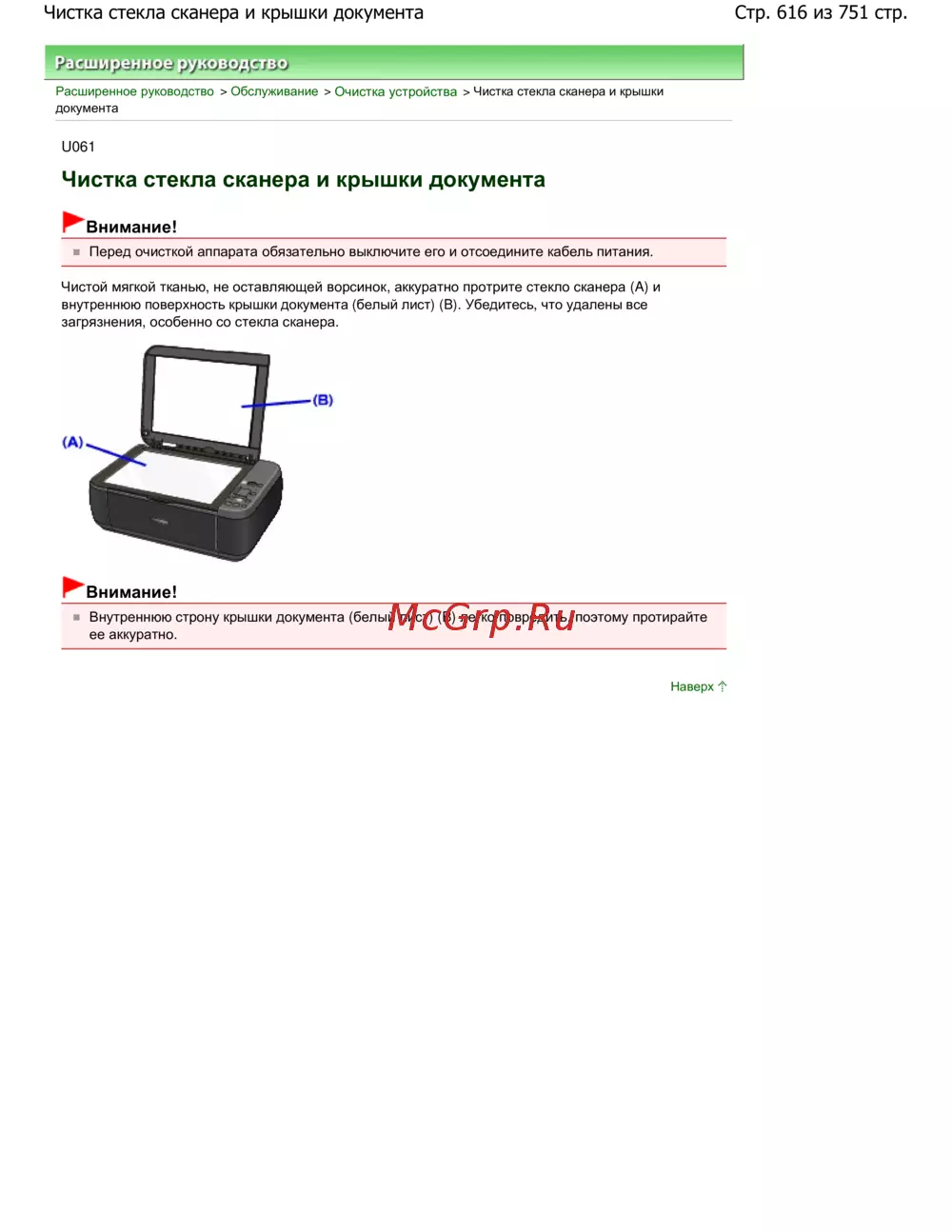 > Чистка стекла сканера и крышки