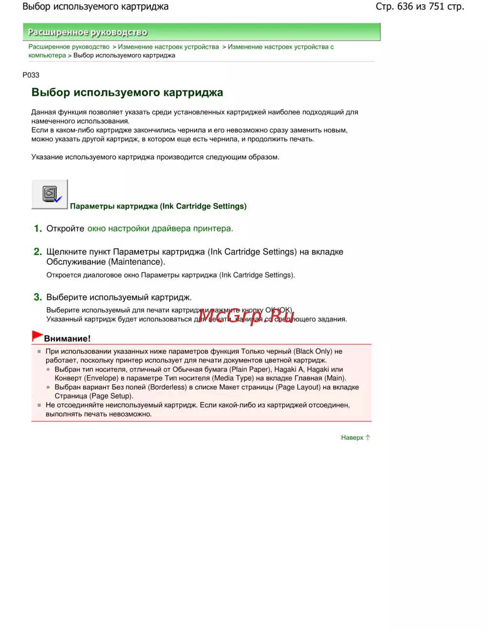 Стр. 636 из 751 стр.Выбор используемого картриджа