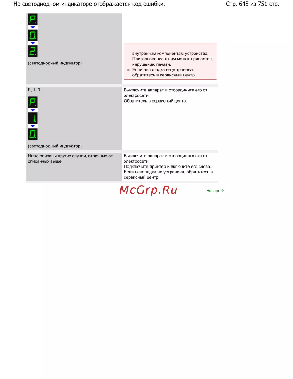 Стр. 648 из 751 стр.На светодиодном индикаторе отображается код ошибки.