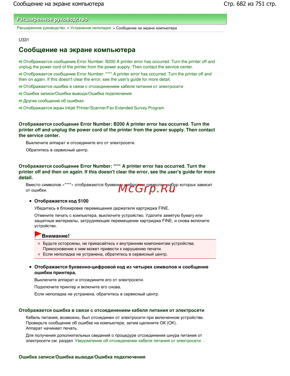 Canon PIXMA MP282 — устранение ошибок принтера: руководство по решению проблем [682/751]