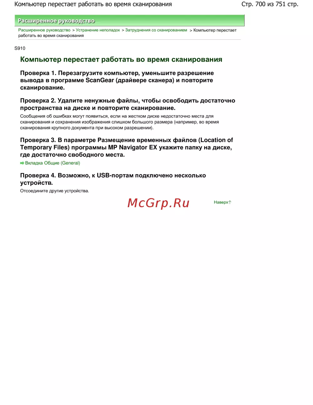 Стр. 700 из 751 стр.Компьютер перестает работать во время сканирования