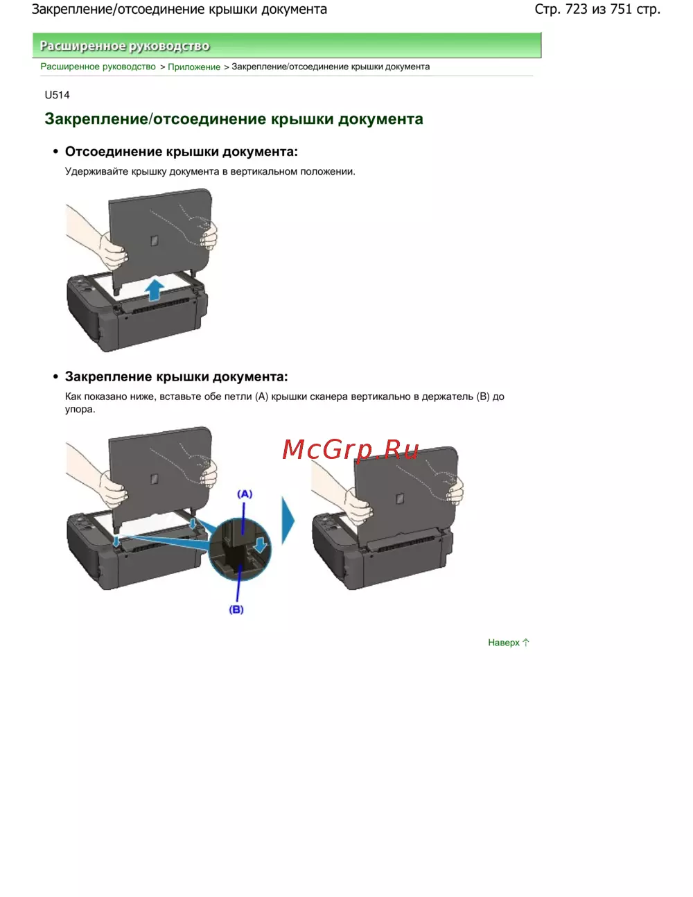 Стр. 723 из 751 стр.Закрепление/отсоединение крышки документа