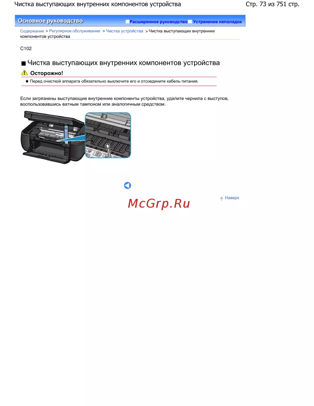 Стр. 73 из 751 стр.Чистка выступающих внутренних компонентов устройства