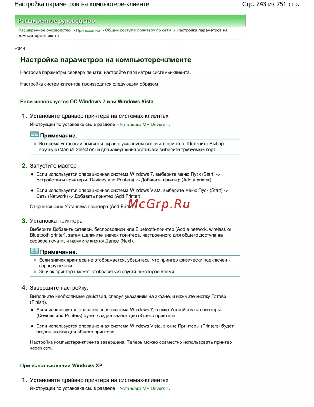 Canon PIXMA MP282 — настройка принтера по сети на компьютере-клиенте: инструкция для Windows 7, Vista, XP [743/751]