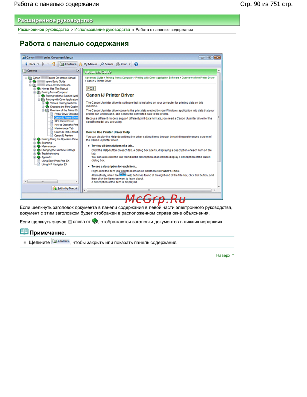 Стр. 90 из 751 стр.Работа с панелью содержания