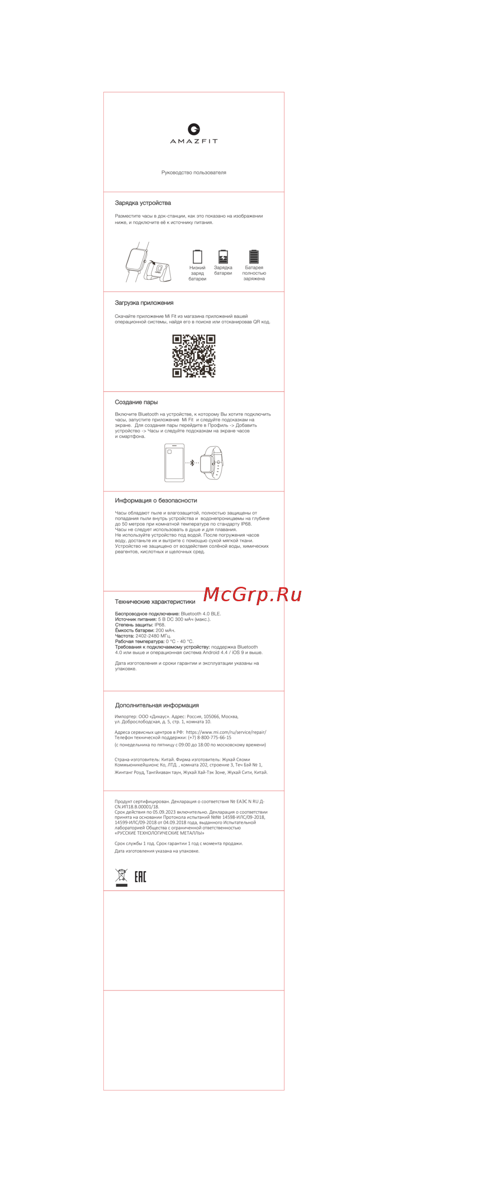 Xiaomi Huami Amazfit PaceРуководство по эксплуатации -