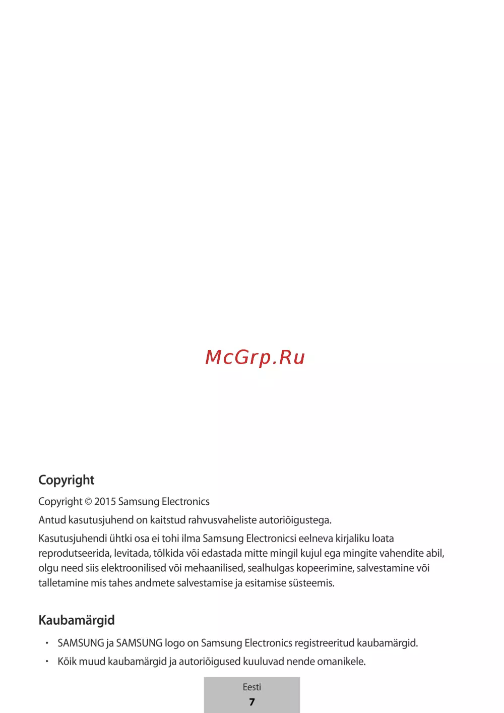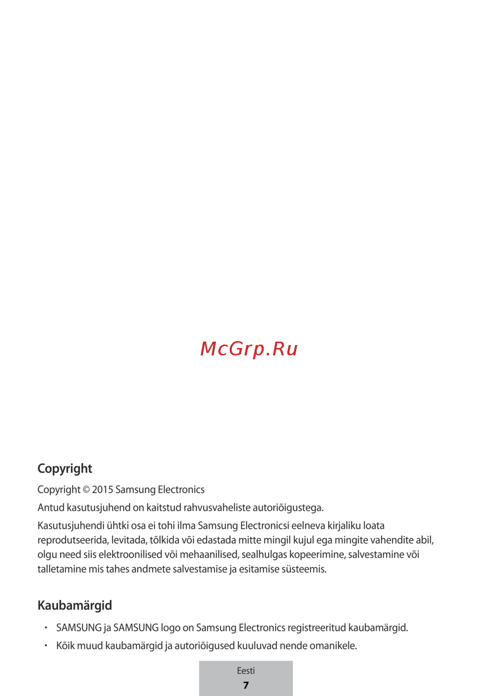 Kasutusjuhendi ühtki osa ei tohi ilma Samsung Electronicsi eelneva kirjaliku loata