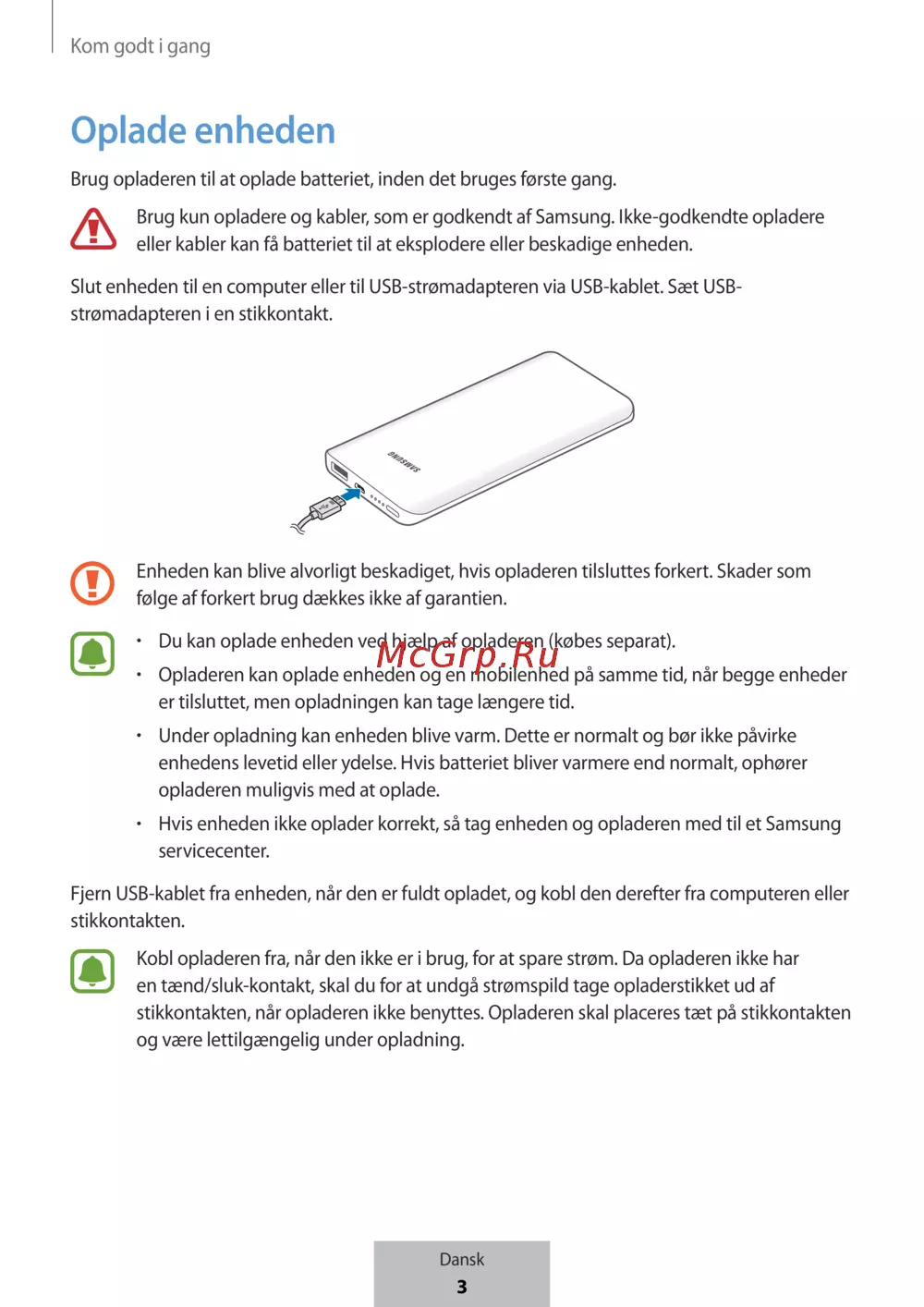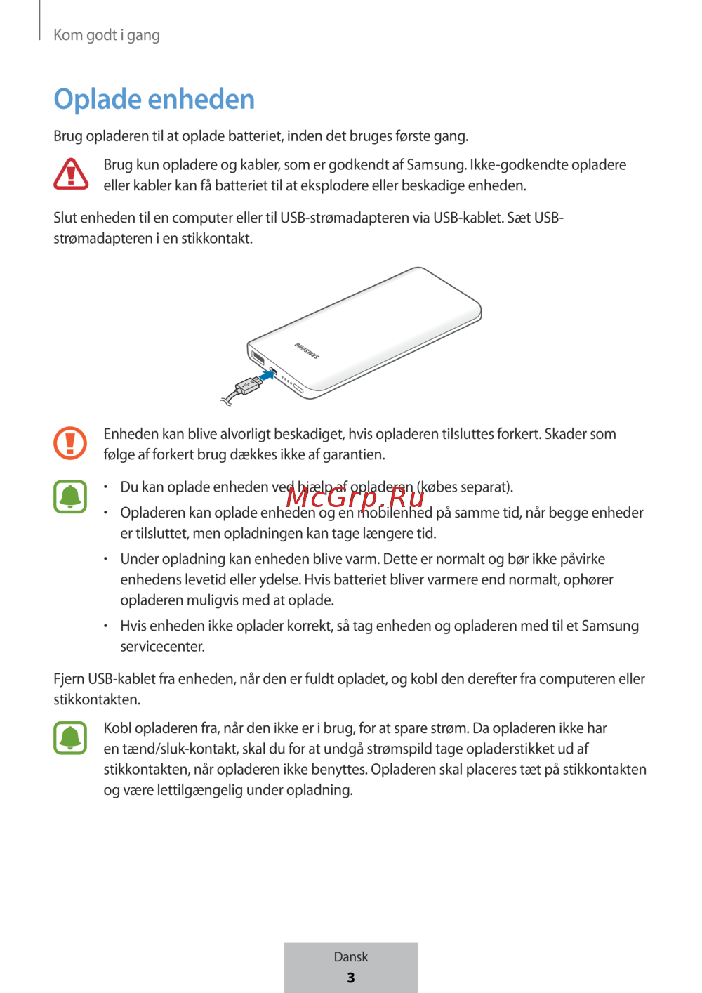 Under opladning kan enheden blive varm. Dette er normalt og bør ikke påvirke