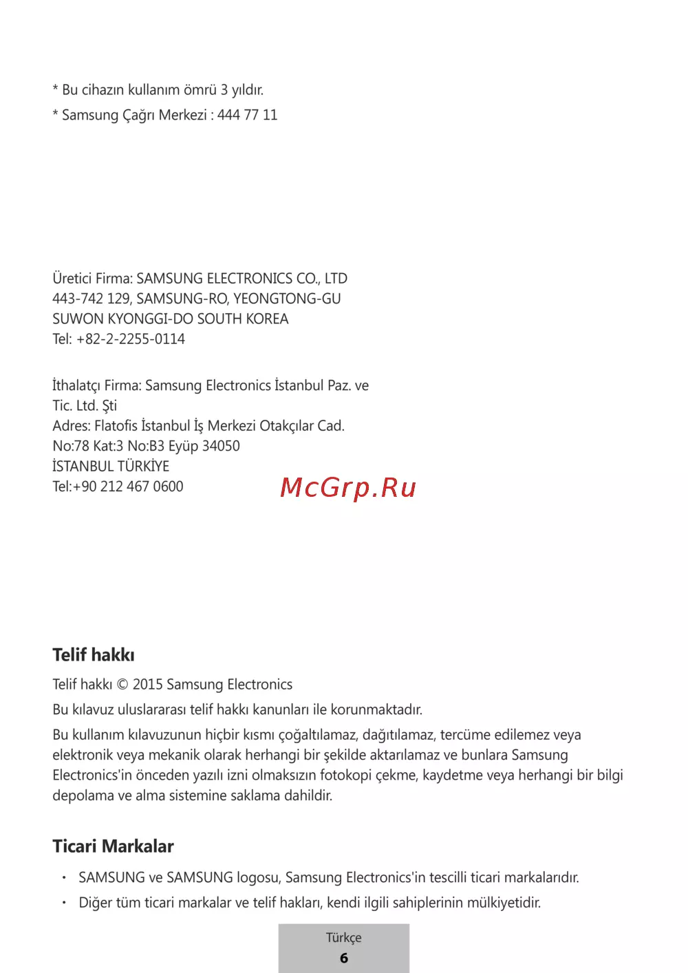 SAMSUNG ve SAMSUNG logosu, Samsung Electronics'in tescilli ticari markalarıdır.