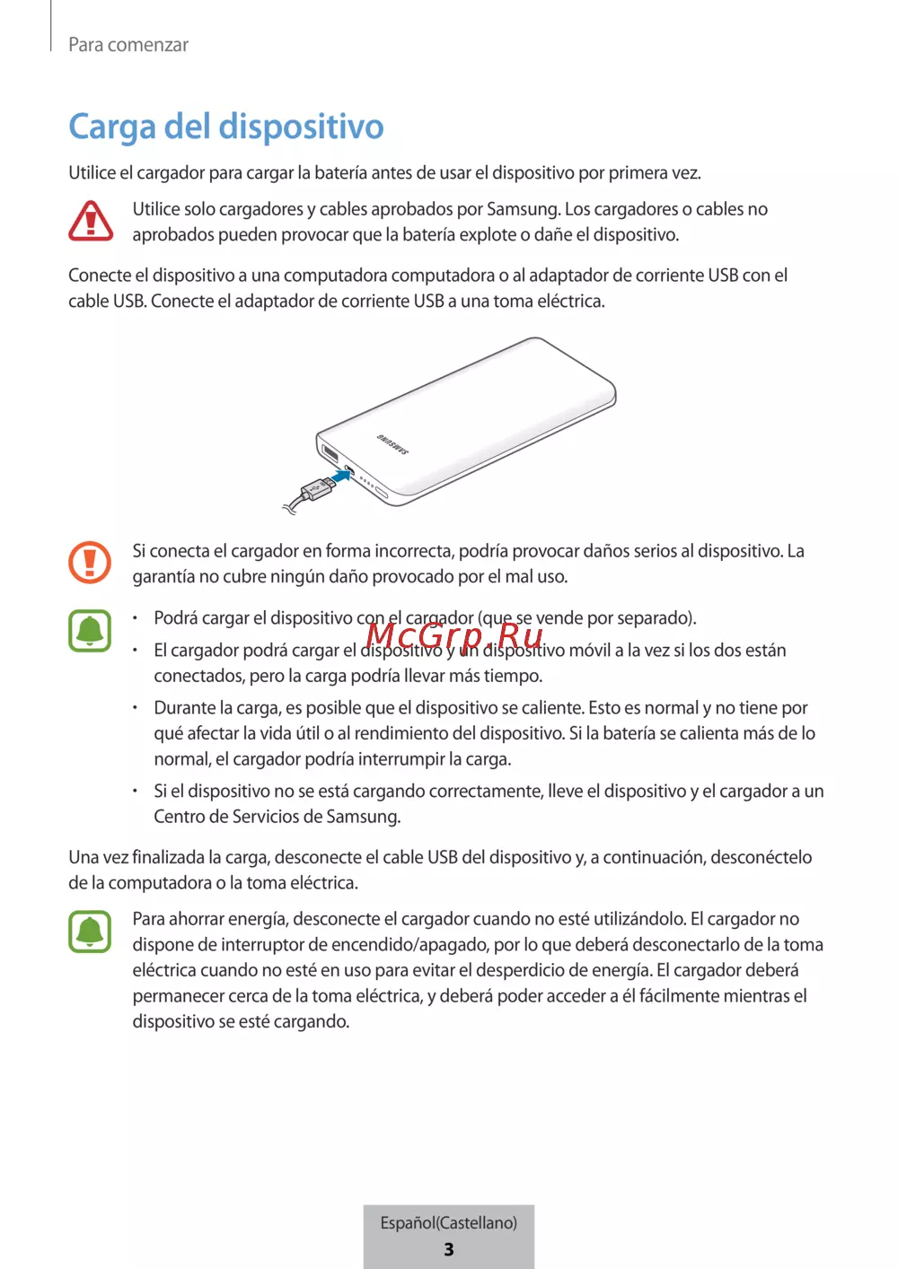 Durante la carga, es posible que el dispositivo se caliente. Esto es normal y no tiene por