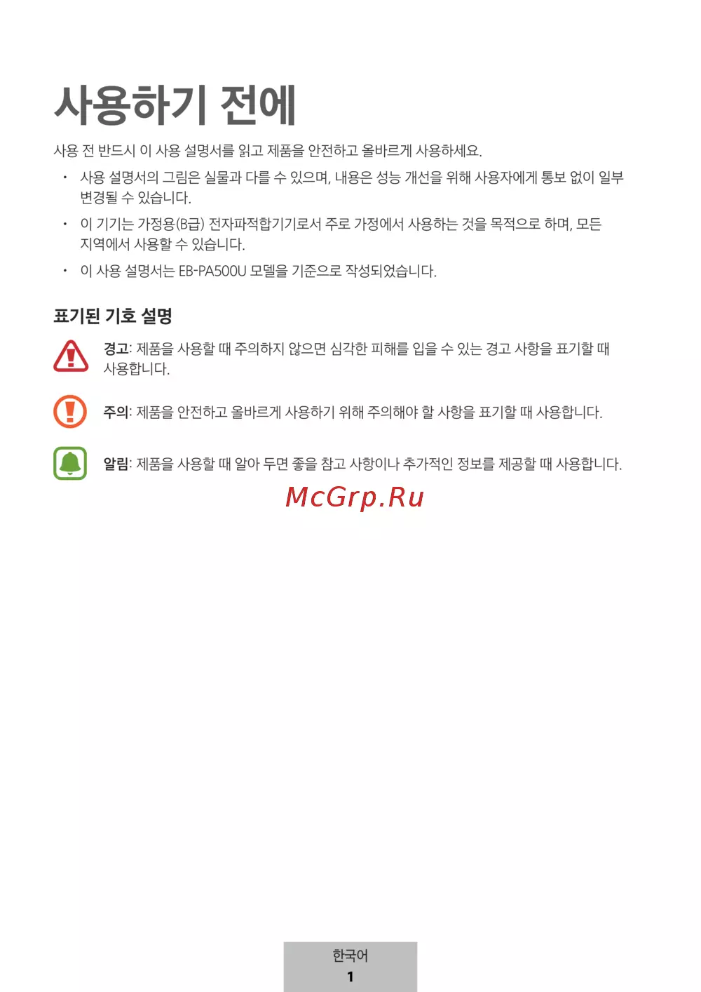 이 사용 설명서는 EB-PA500U 모델을 기준으로 작성되었습니다.