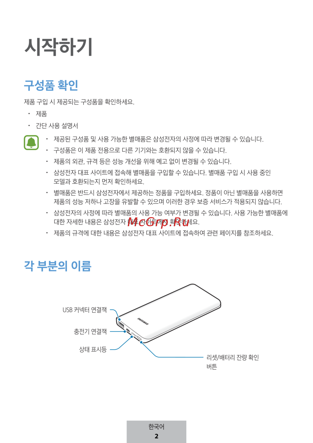 제공된 구성품 및 사용 가능한 별매품은 삼성전자의 사정에 따라 변경될 수 있습니다.