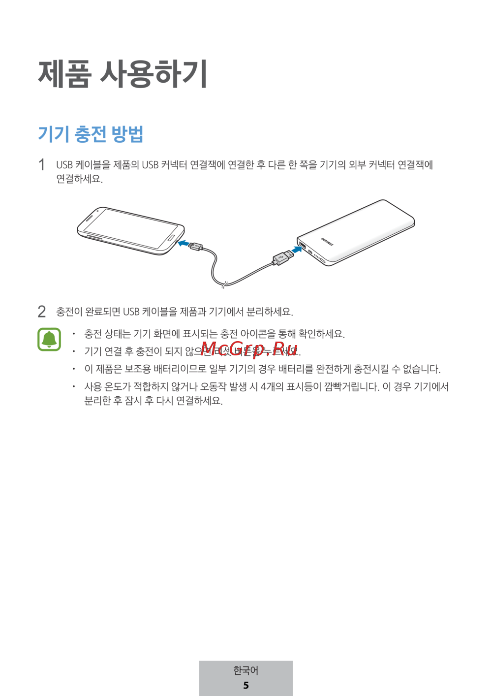 이 제품은 보조용 배터리이므로 일부 기기의 경우 배터리를 완전하게 충전시킬 수 없습니다.