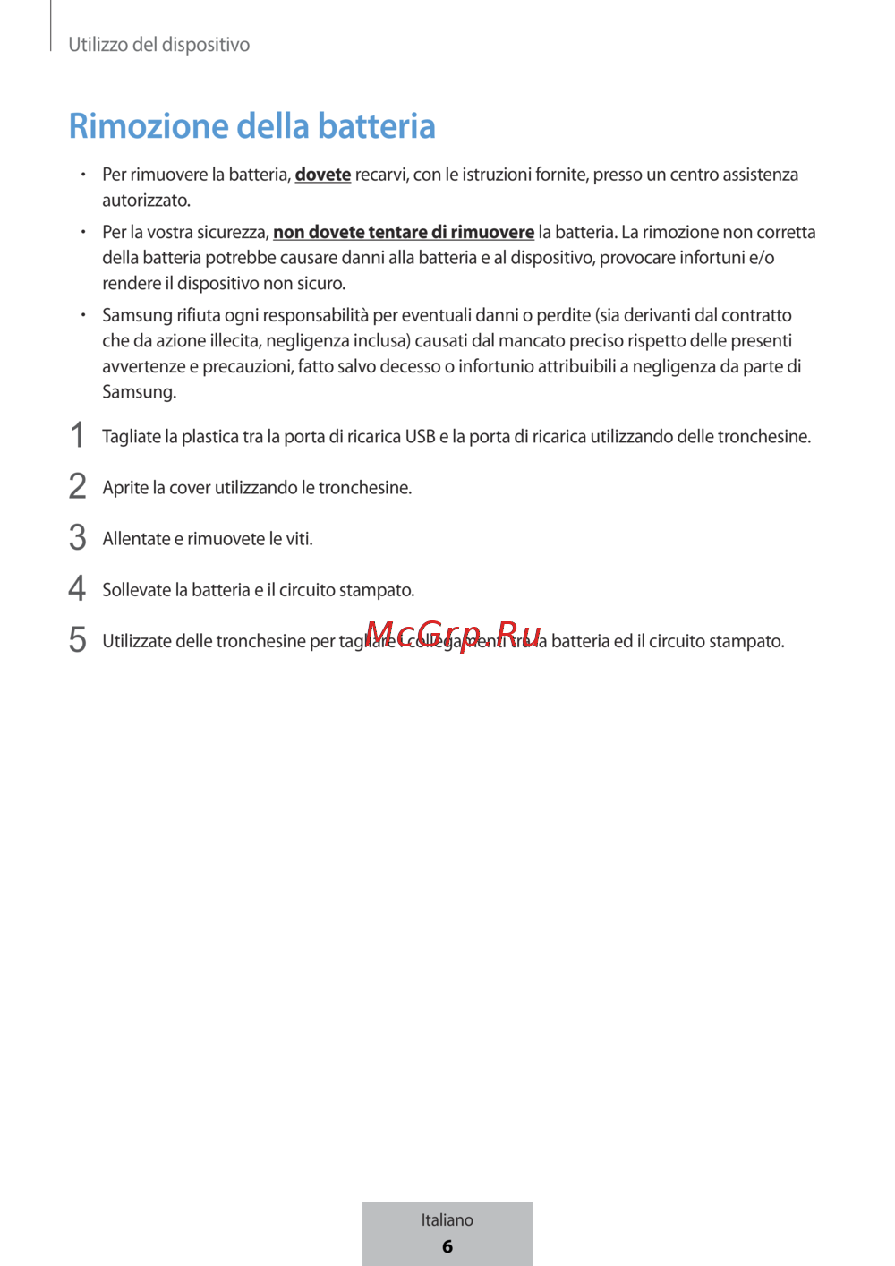 Per la vostra sicurezza, non dovete tentare di rimuovere la batteria. La rimozione non corretta