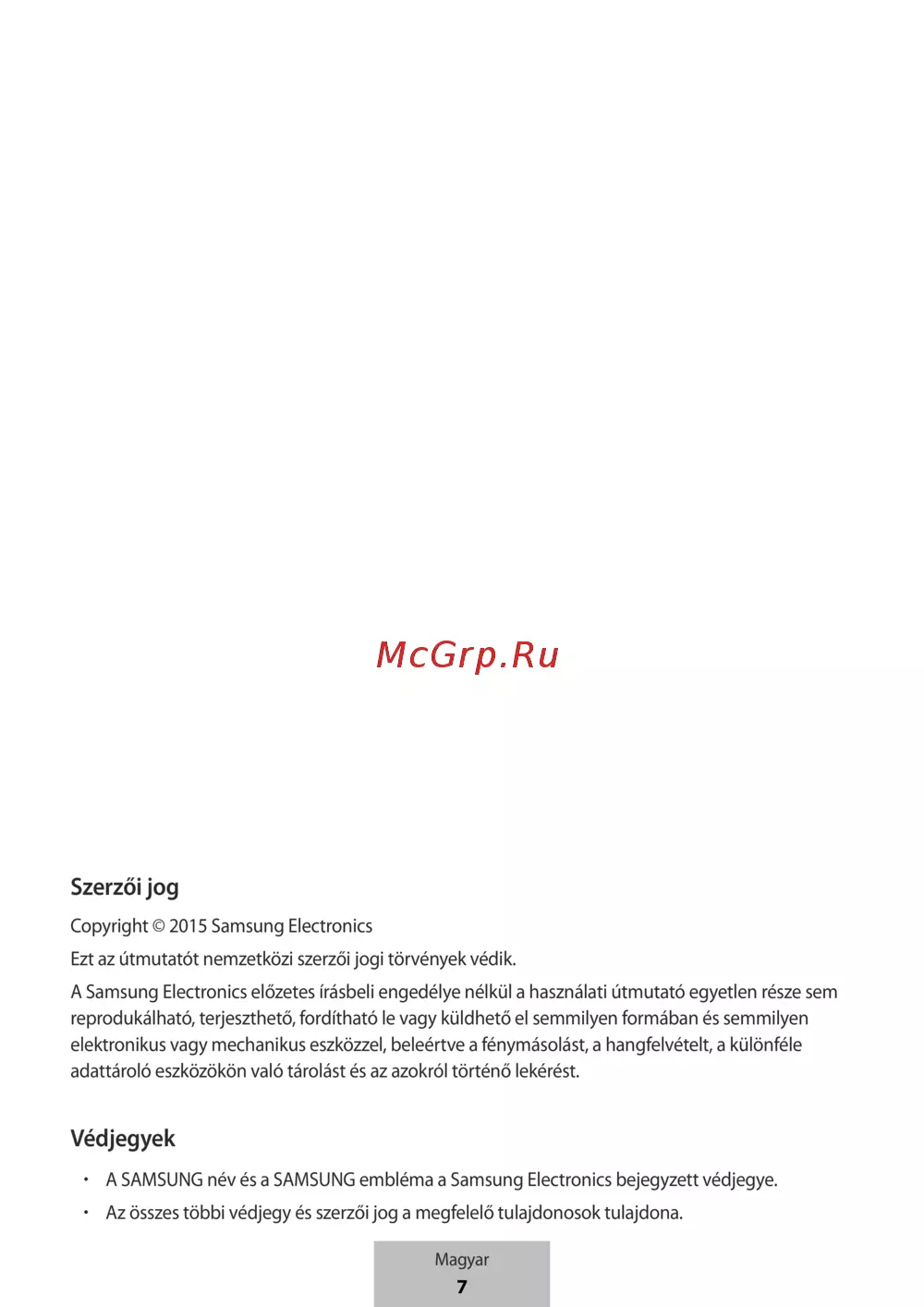 A Samsung Electronics előzetes írásbeli engedélye nélkül a használati útmutató egyetlen része sem