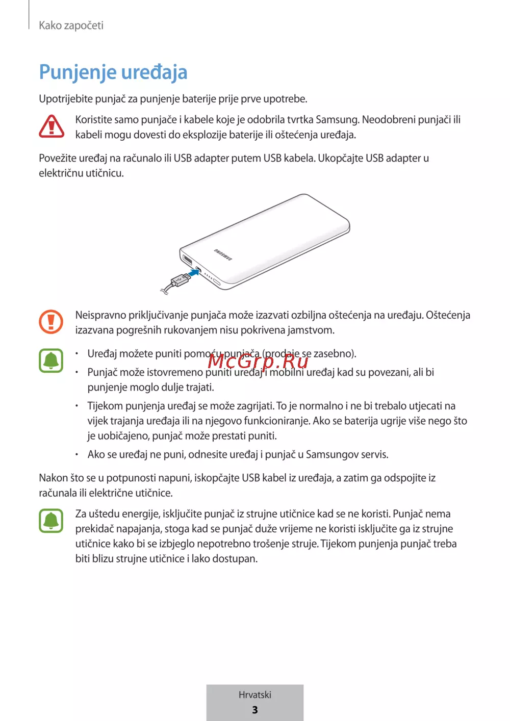 Tijekom punjenja uređaj se može zagrijati. To je normalno i ne bi trebalo utjecati na