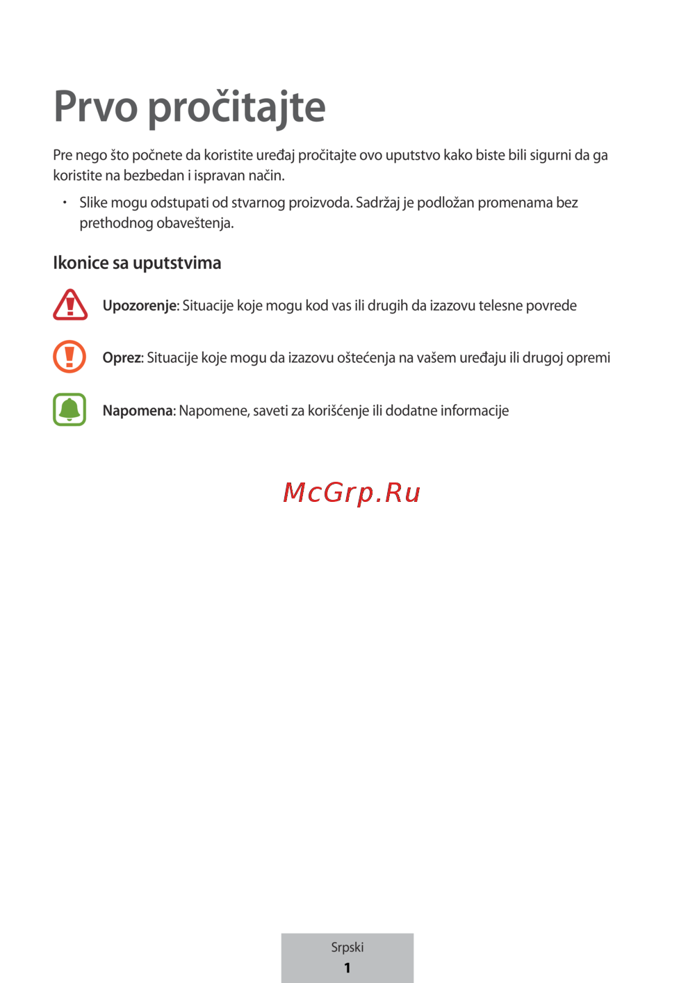 Pre nego što počnete da koristite uređaj pročitajte ovo uputstvo kako biste bili sigurni da ga