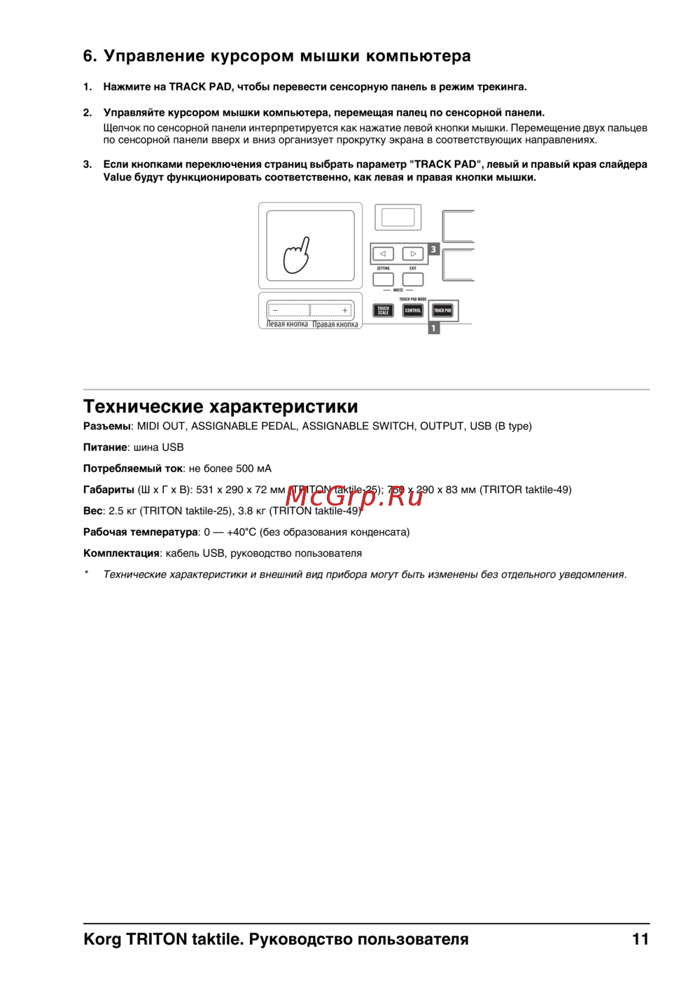 Korg TRITON Taktile 49Руководство по эксплуатации -