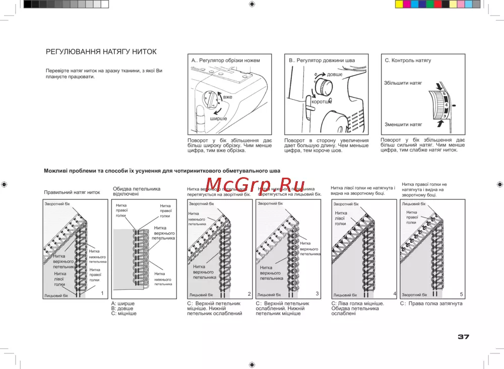 A.. Регулятор обрізки ножем B.. Регулятор довжини шва