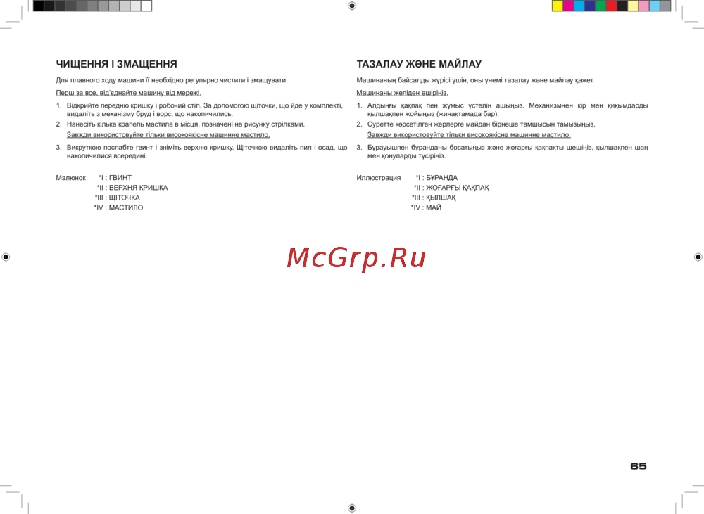 Машинаның байсалды жүрісі үшін, оны үнемі тазалау жəне майлау қажет.