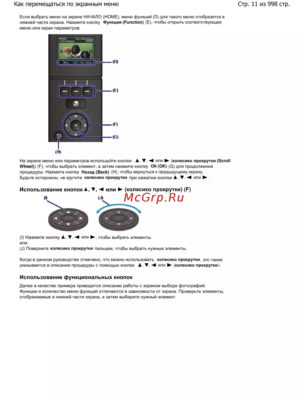 Стр. 11 из 998 стр.Как перемещаться по экранным меню