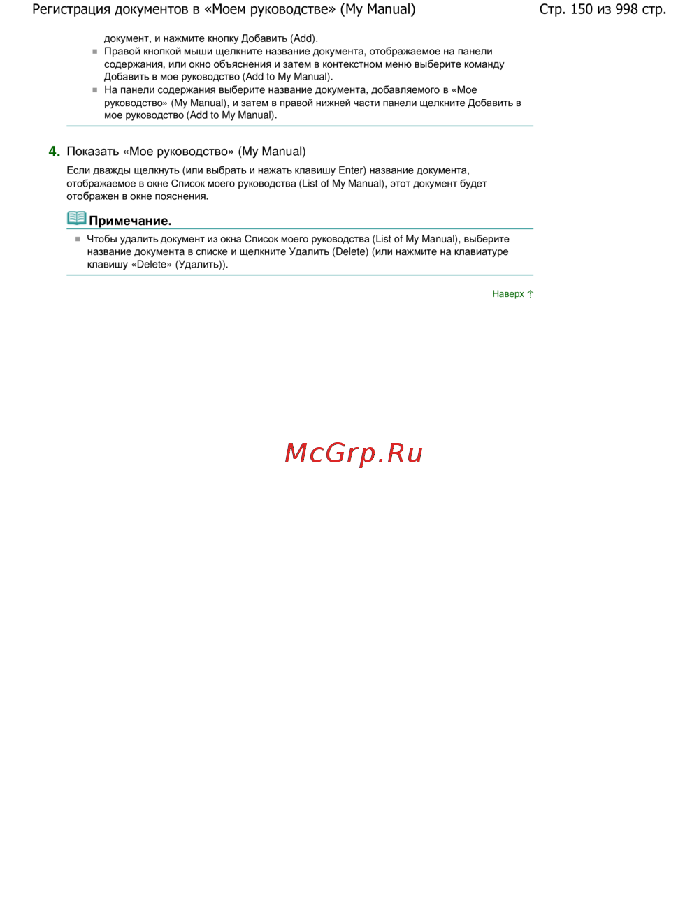 Стр. 150 из 998 стр.Регистрация документов в «Моем руководстве» (My Manual)