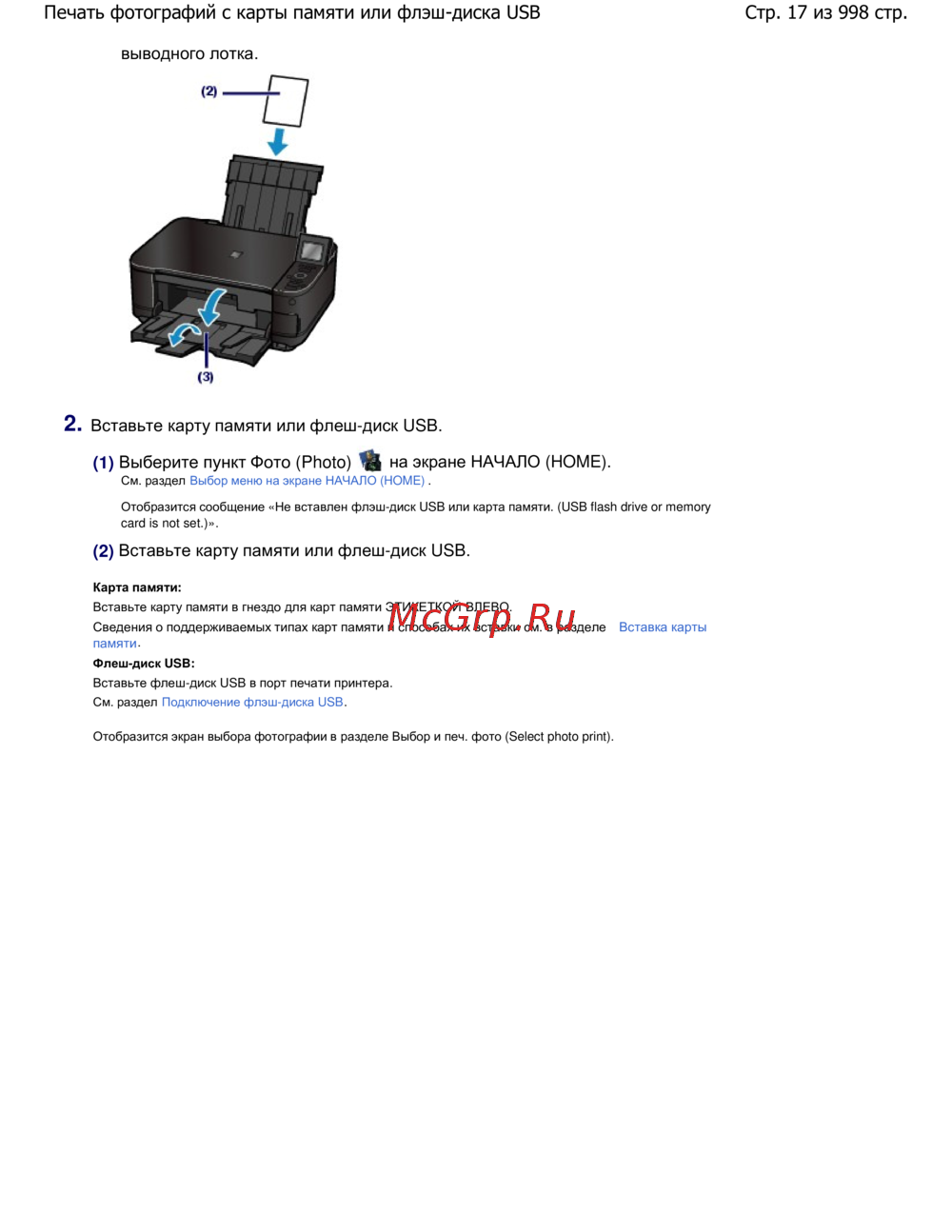 Стр. 17 из 998 стр.Печать фотографий с карты памяти или флэш-диска USB