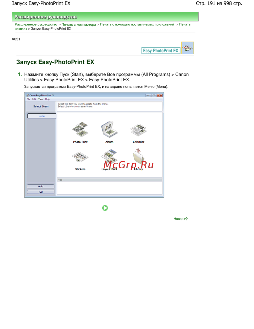 Стр. 191 из 998 стр.Запуск Easy-PhotoPrint EX