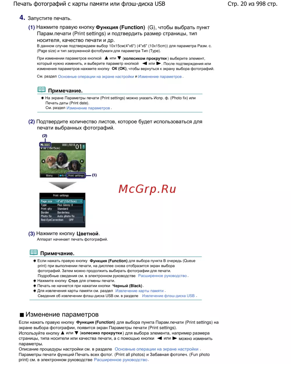 Стр. 20 из 998 стр.Печать фотографий с карты памяти или флэш-диска USB