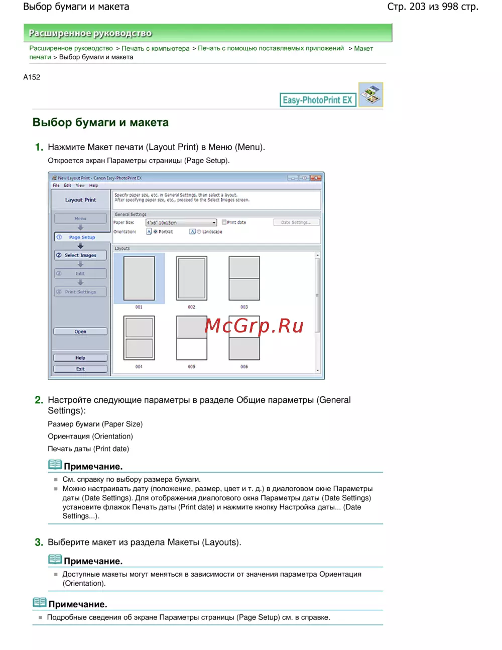 Стр. 203 из 998 стр.Выбор бумаги и макета