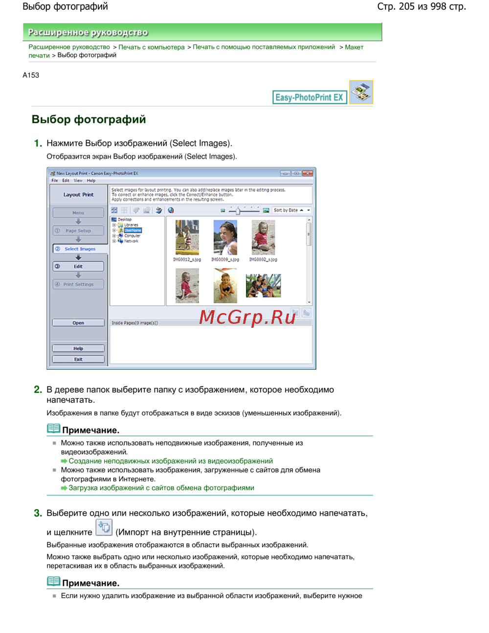 Canon Pixma MP280Руководство по программе My Image Garden (Windows) -