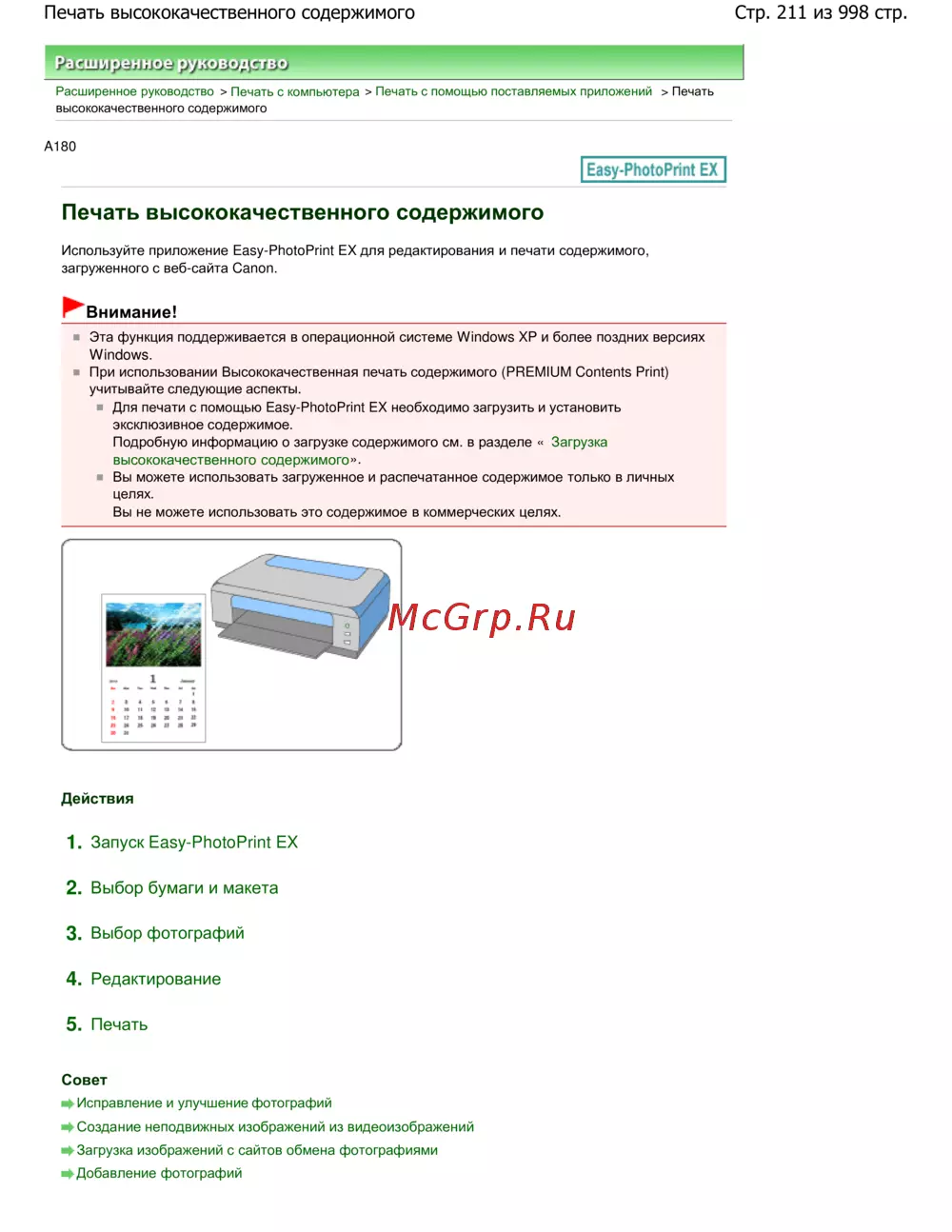 Canon Pixma MG5140 — руководство по высококачественной печати с помощью Easy-PhotoPrint EX [211/998]