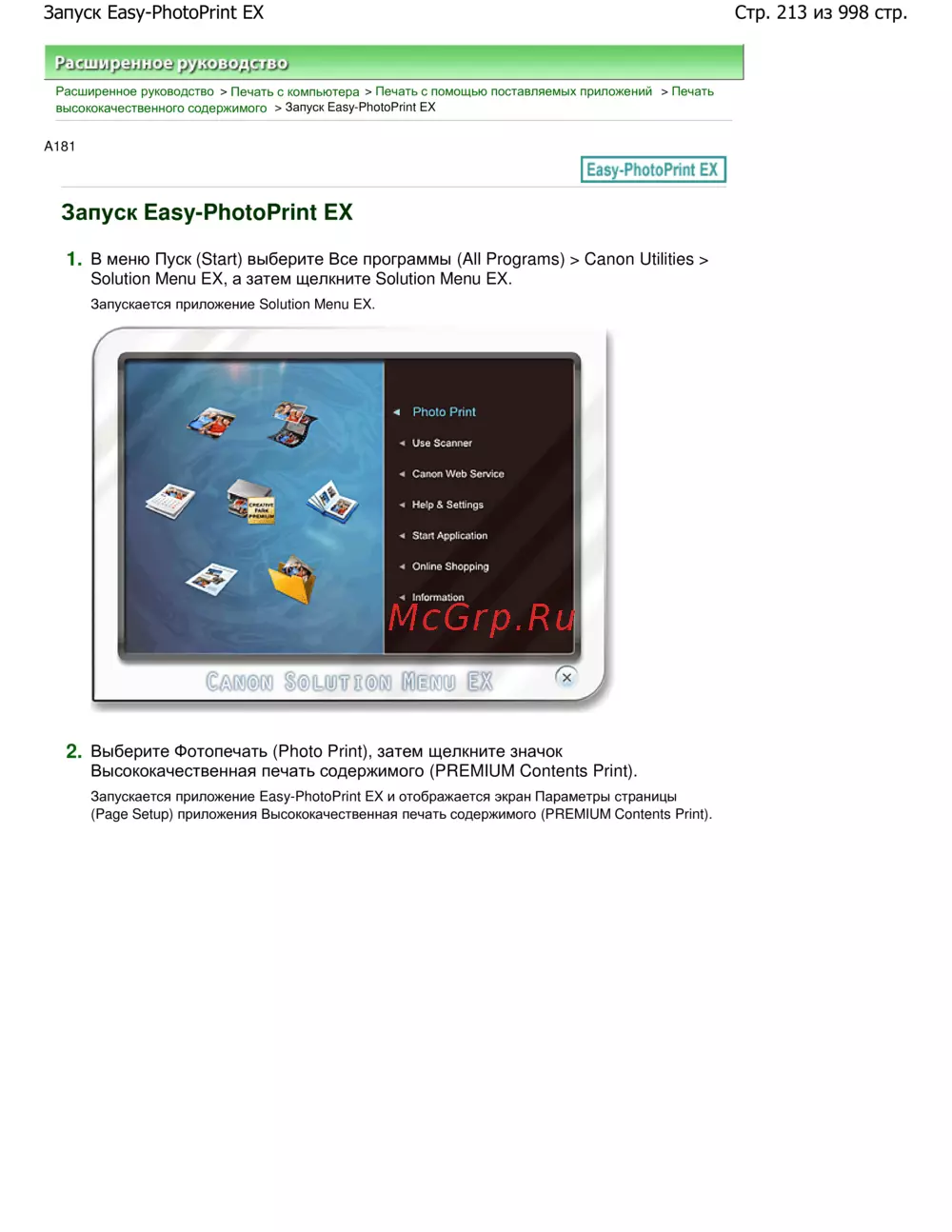Стр. 213 из 998 стр.Запуск Easy-PhotoPrint EX