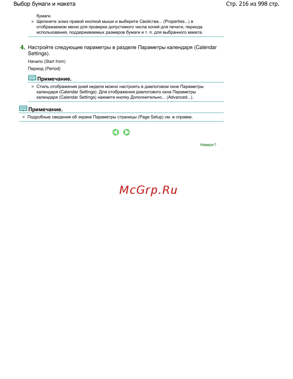 Canon Pixma MG5140 — настройка параметров печати, выбор бумаги и календаря [216/998]
