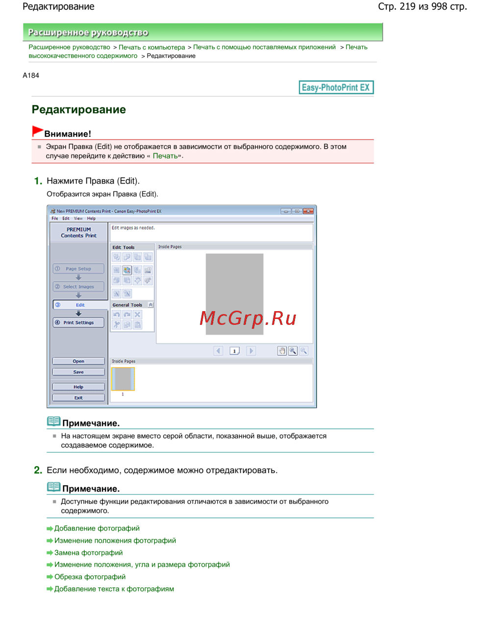 Стр. 219 из 998 стр.Редактирование