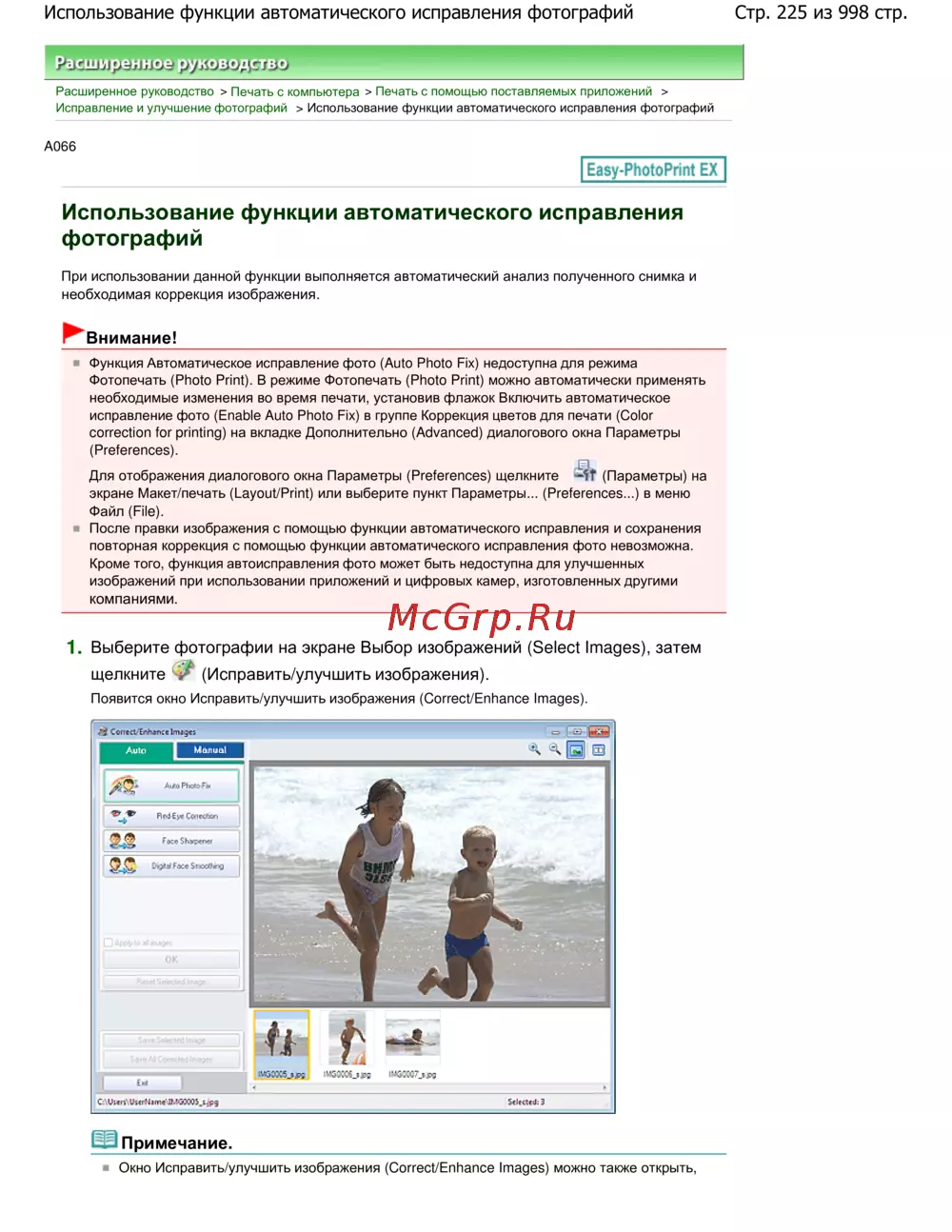 Стр. 225 из 998 стр.Использование функции автоматического исправления фотографий