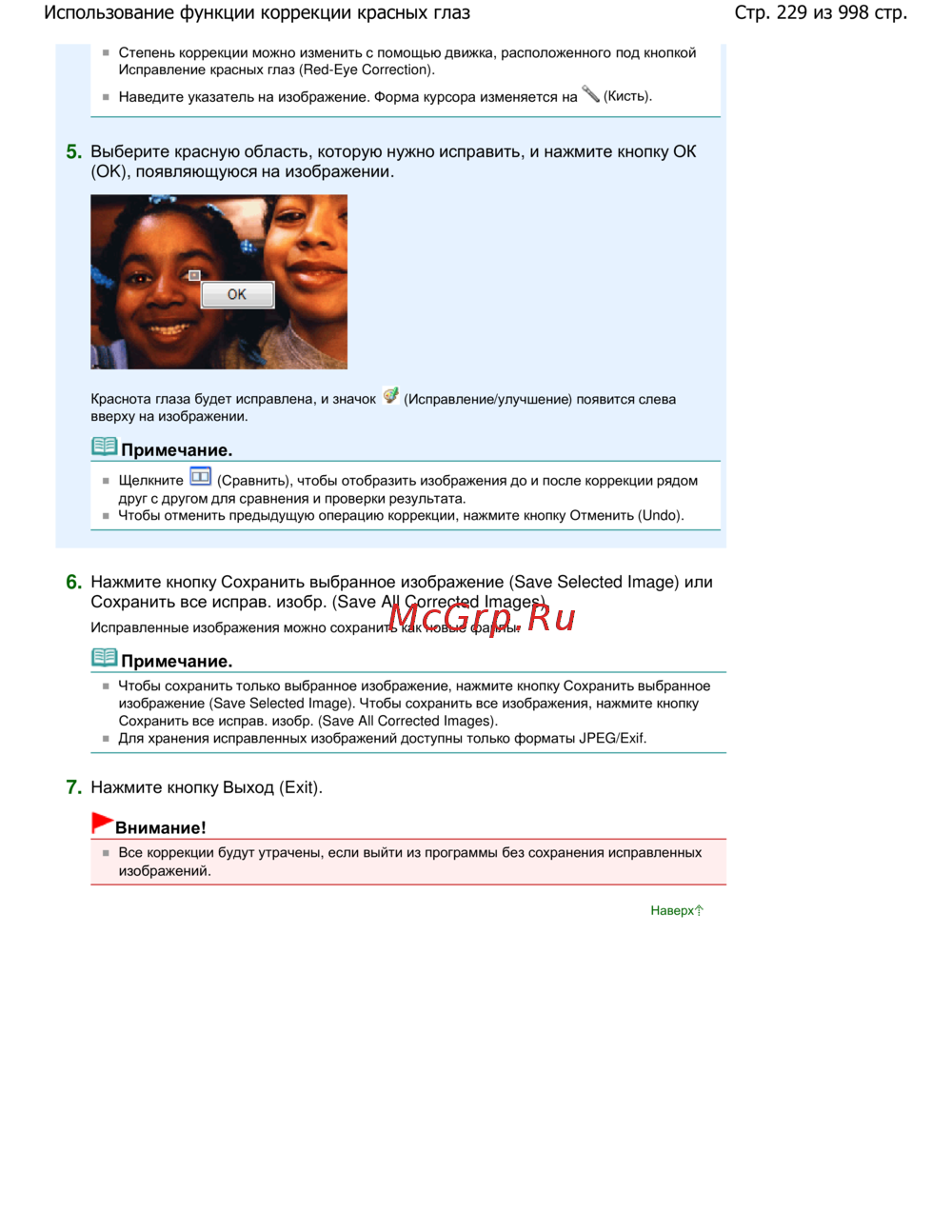 Стр. 229 из 998 стр.Использование функции коррекции красных глаз