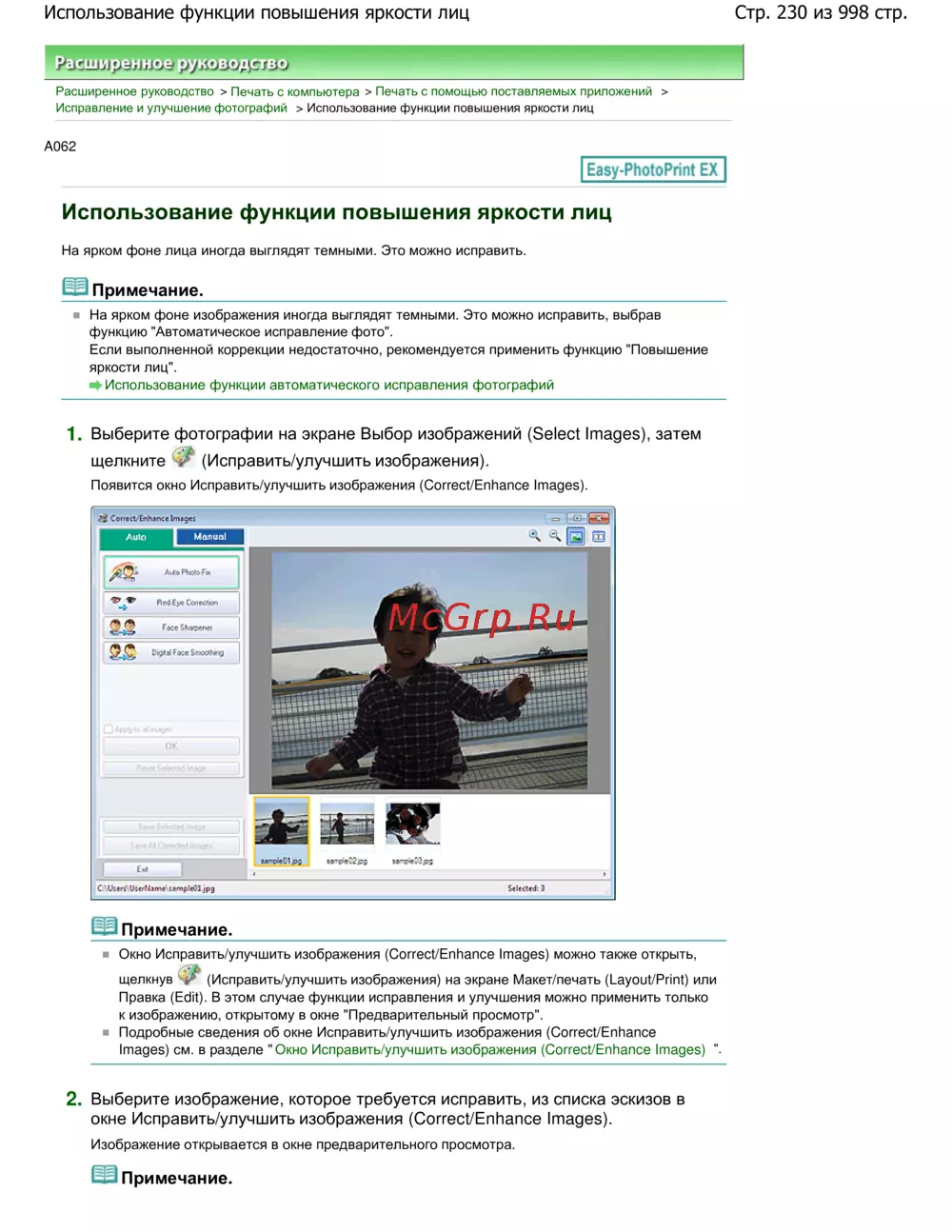 Стр. 230 из 998 стр.Использование функции повышения яркости лиц