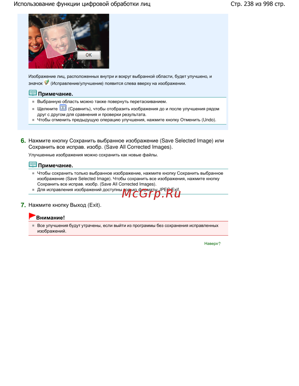 Стр. 238 из 998 стр.Использование функции цифровой обработки лиц