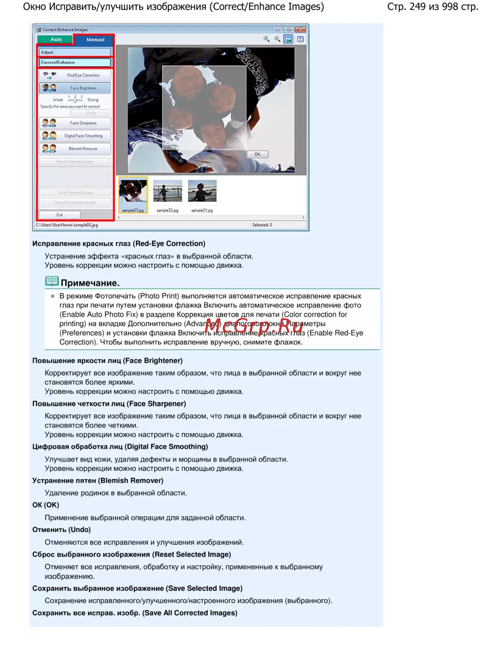 Стр. 249 из 998 стр.Окно Исправить/улучшить изображения (Correct/Enhance Images)