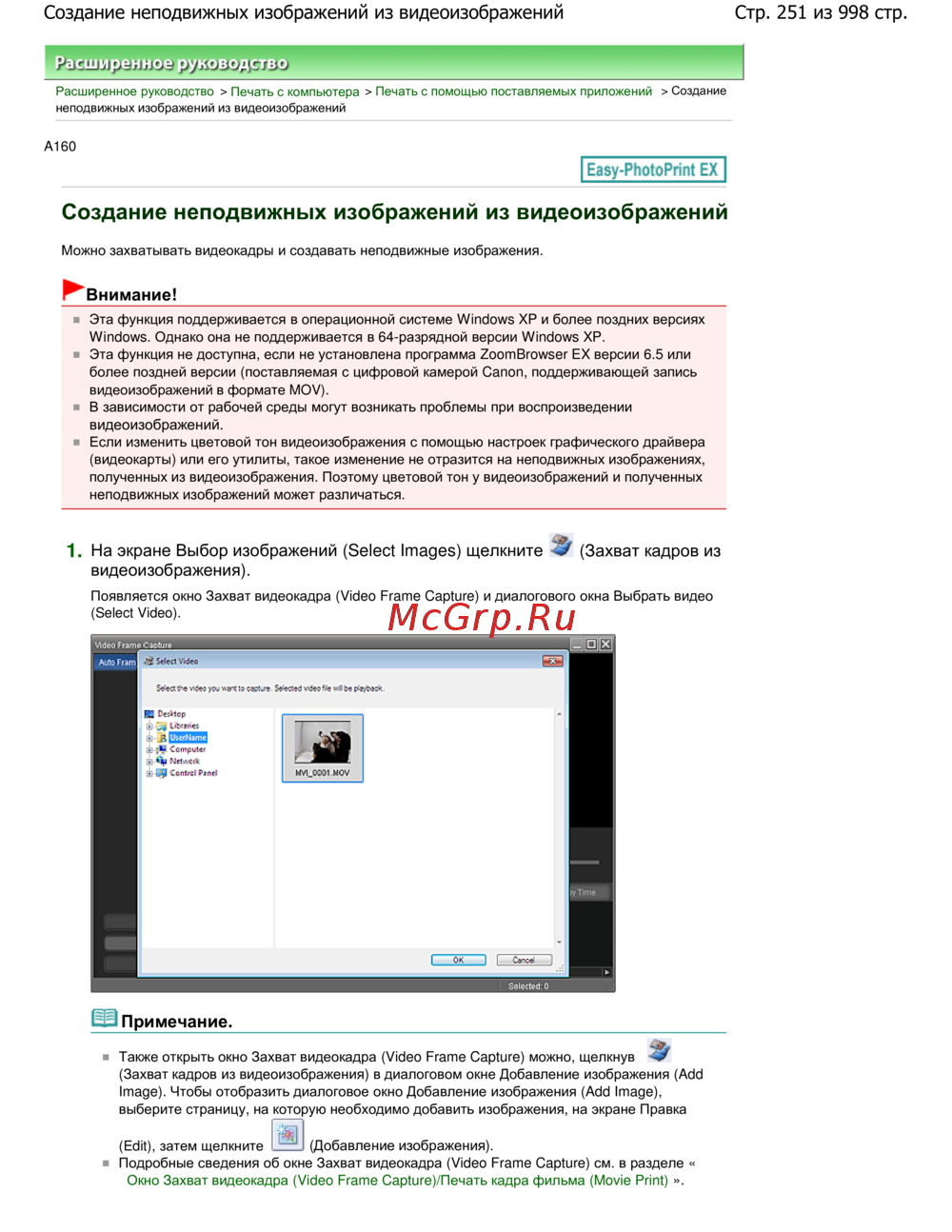 Стр. 251 из 998 стр.Создание неподвижных изображений из видеоизображений