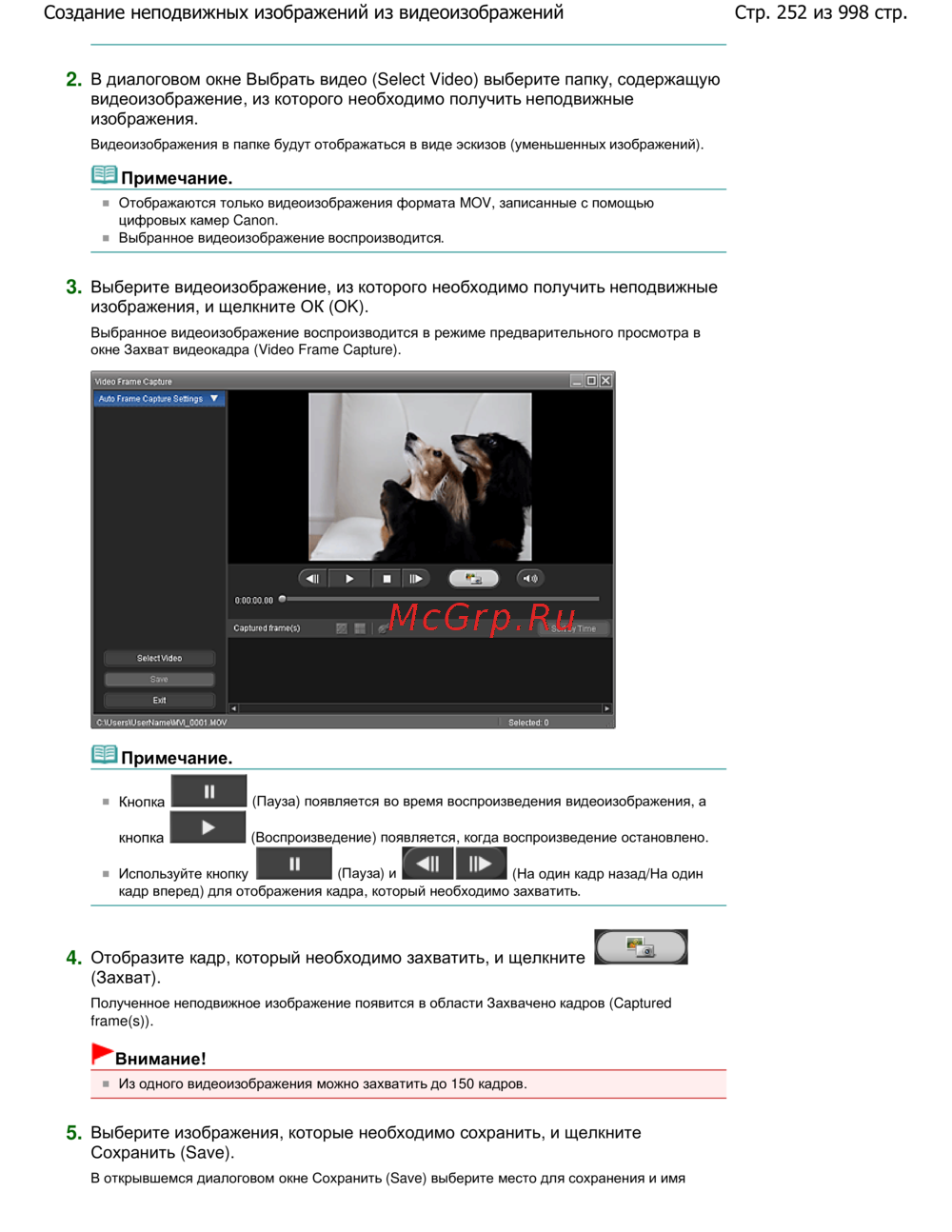 Стр. 252 из 998 стр.Создание неподвижных изображений из видеоизображений