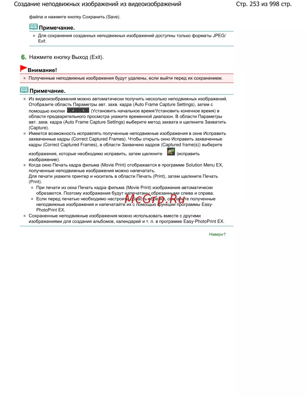 Стр. 253 из 998 стр.Создание неподвижных изображений из видеоизображений